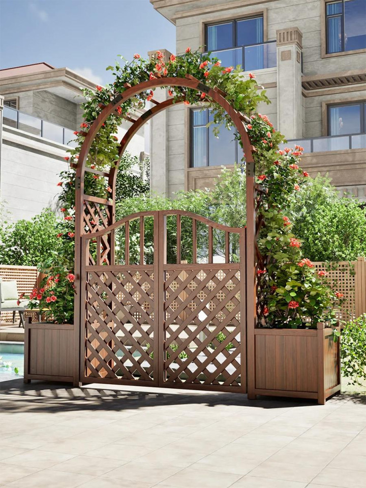 金属花架,线条利落,尤其适合现代风的小院,但别忘了留意它的防锈工艺,不然一场雨一阵风,可能就留下斑驳痕迹。